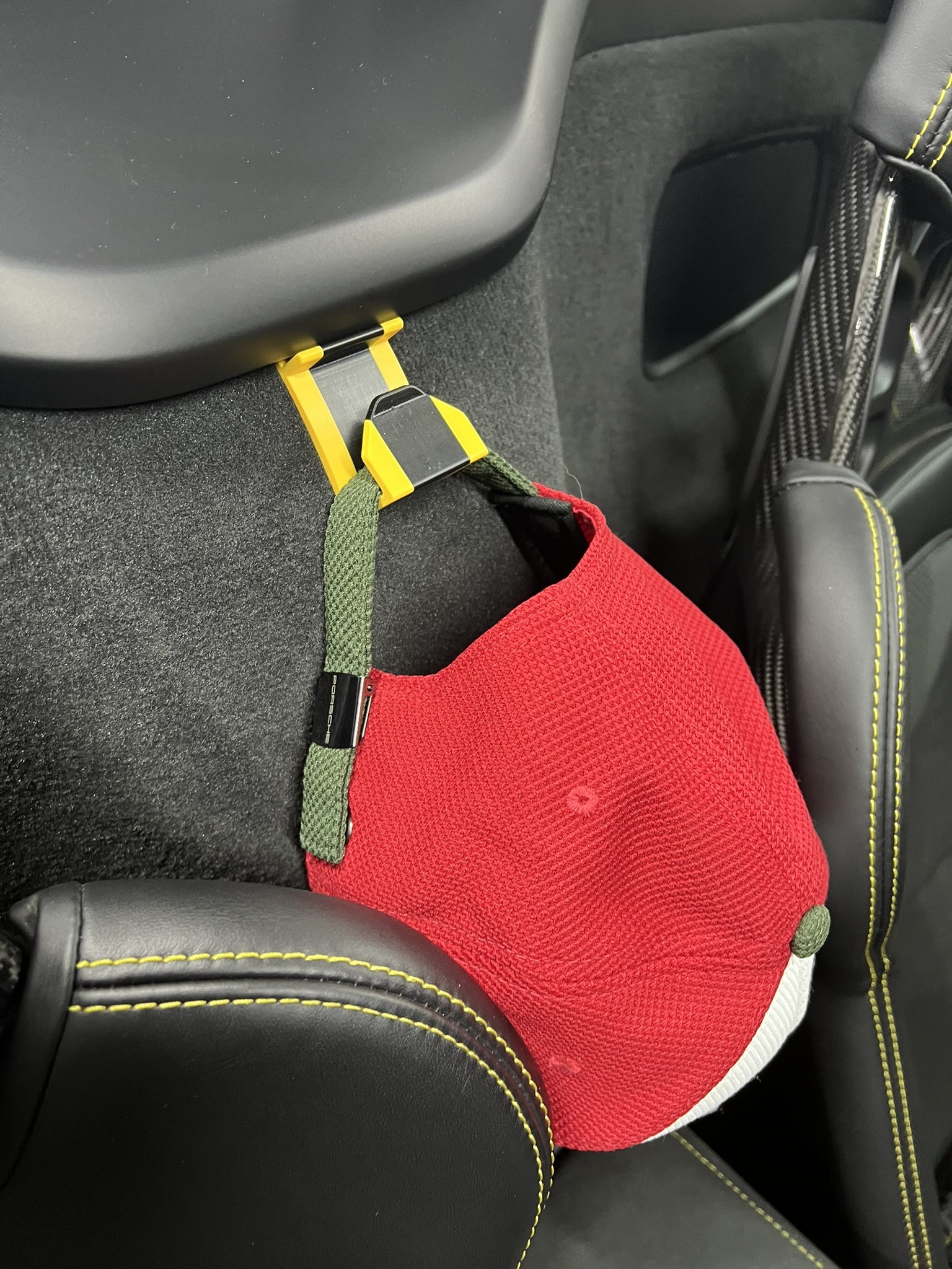 A smart, stylish way to hang your cap in your Porsche Boxster.