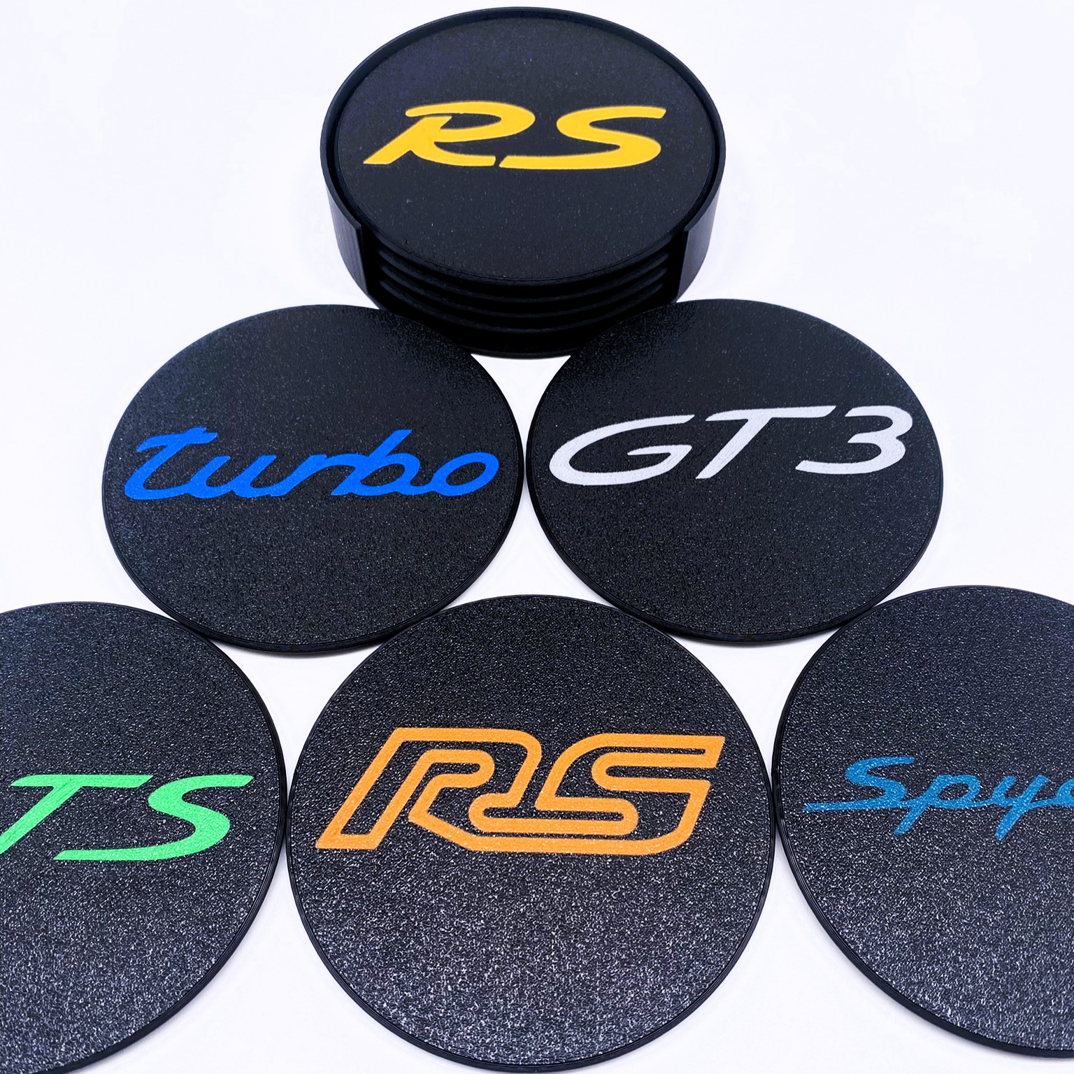 Whether you’re sipping espresso at your desk or enjoying a quiet moment at home, our coasters let you showcase your love for iconic Porsche models like the GT3, Spyder, Turbo, RS, 992RS, 911, and GTS.